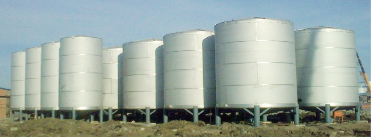 在蘇州現場制作倆臺消防水罐 為中鐵十局制作的水泥料倉 為浙江某外企制作的路鎂合金料倉 為西安某熱電廠做的雙層保溫煙囪 為上海某輸送公司供應的一臺套料倉 為南京某生物制劑企業制作的料倉 為某飲料公司做的幾臺不銹鋼料倉群 為某加油站制作的地埋罐